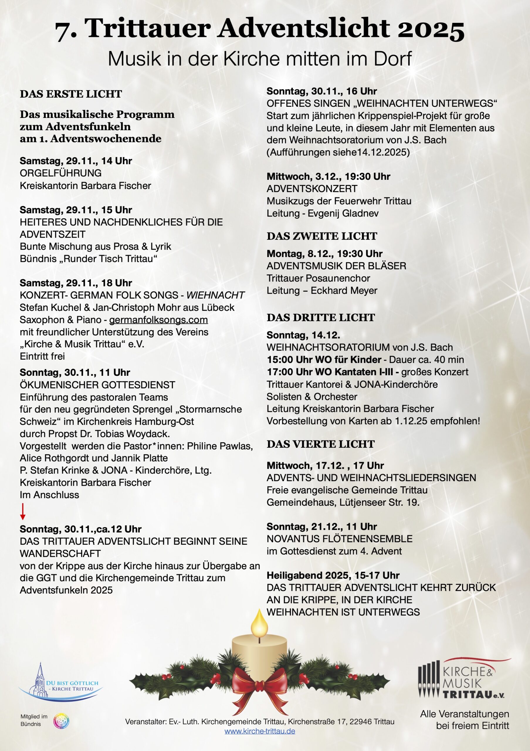 Die gemeinsame Pressemitteilung der Katholischen Pfarrei St. Ansverus und der Evangelisch-Lutherischen Kirchengemeinde Trittau befindet sich hier.